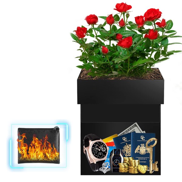 Sdstone Fireresistant Steel Flower Pot Diversion Safe with Fireproof Money Bag and Lock,Secret Hidden Safe Lock Box,Hiding The Valuables Inside Flower Pot’s False Bottom,Plants Not Include(Black)