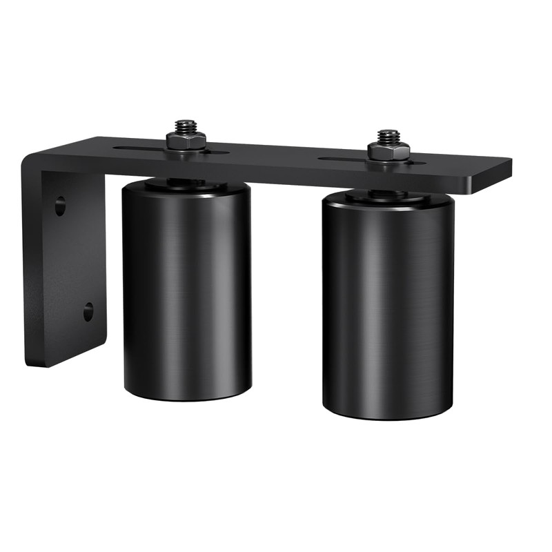 - 【Easy to install】: Fix two nylon rollers on a heavy-duty L-bracket and use expansion bolts to install the bracket on the rear column wall. The gap between the two rollers is adjustable. The gate roller guide can be used for indoor or outdoor barn doors in homes, garages, sheds, storage spaces, etc
