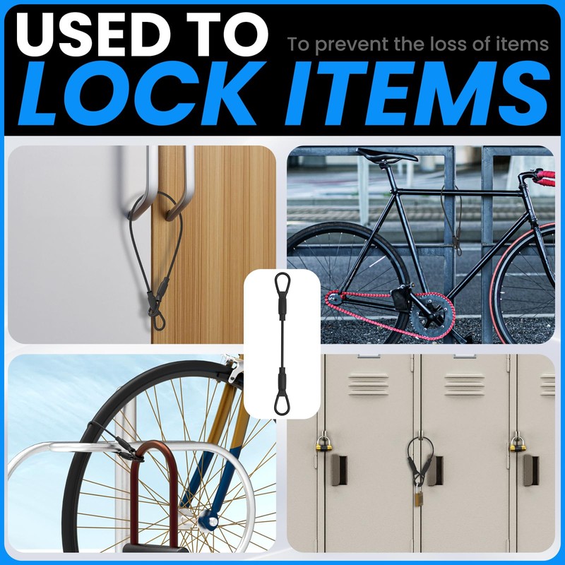 • With Aluminum crimp sleeve looped ends for hanging and securing, suitable for all padlocks, u-locks, bike helmet lock, backpack straps and so on.