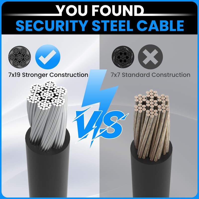 • PVC coating wire rope cable, 3mm thickness and 5.9 inches length, made of stainless steel to ensure flexible, stronge and durable.