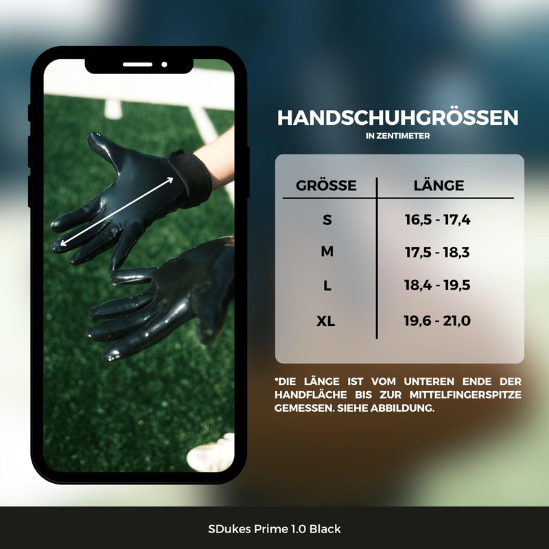 Are you looking for an American football glove that combines grip, elasticity, stability and robustness at an unbeatable price? Then we have just the thing for you. The Prime football gloves from SDukes combine first-class materials and sophisticated design to take your performance on the field to a new level. The SDukes Prime football glove is not only a performance star, but also a real eye-catcher.