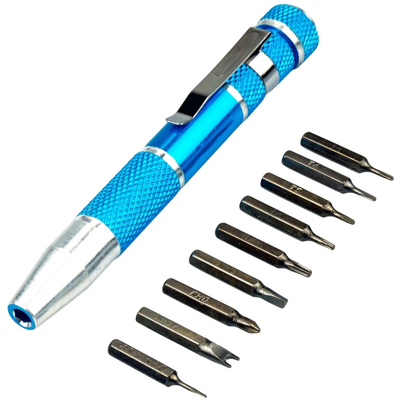 Premium-Grade Pocket Precision Screwdriver - 9 Self-Storing Bits