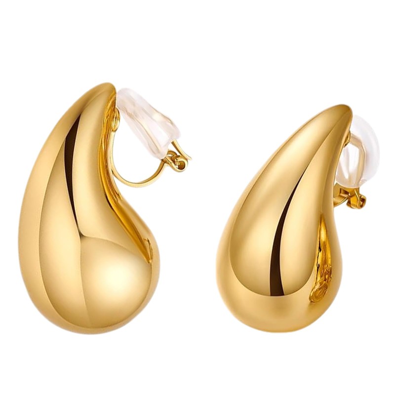 Se607as7 Hypoallergenic Teardrop Clip Earrings Women Gold
