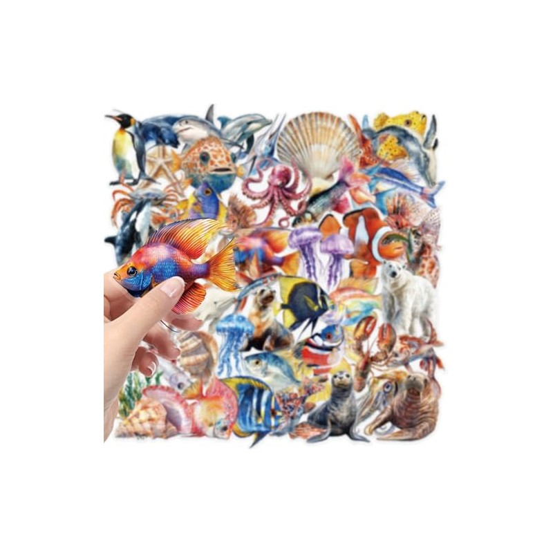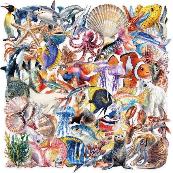 Sea Animals Stickers Transparent Marine Life Sticker Set 50 Pieces Cute Decoration for Car Laptop Skateboard Bicycle Moped Motorcycle Bicycle Computer Suitable for Adults Children