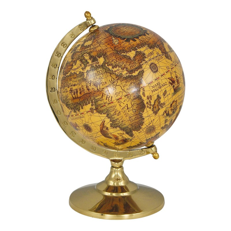 Sea Club Globe on Brass Base, Tarnish-Resistant, Diameter 15 cm, Height 23 cm