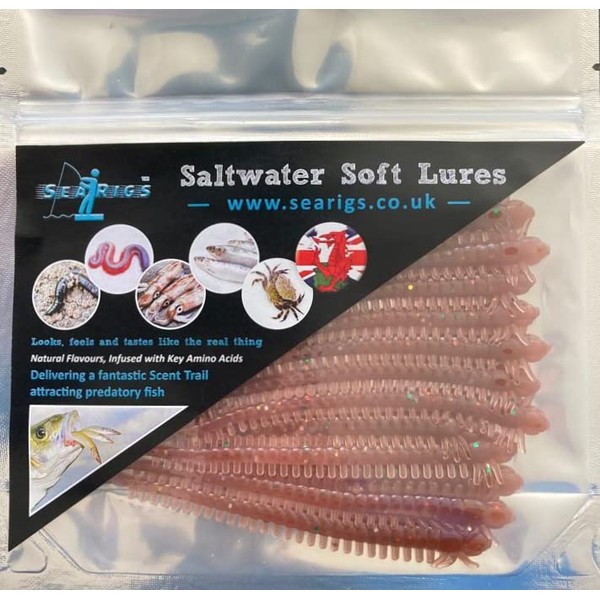 Sea Fishing - Brown RAGWORM lures - 4 Inch (10.5cm) - x12 per pack - Target Bass, Cod, Sole, Plaice and Flounder