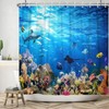 Sea Floor Shower Curtain 180 x 180 cm, ASDCXZ Blue Deep Sea Ocean Colourful Underwater World Shark Turtle Fish Bath Washable Shower Curtains Polyester Textile Waterproof Bath Curtain for Bath with 12