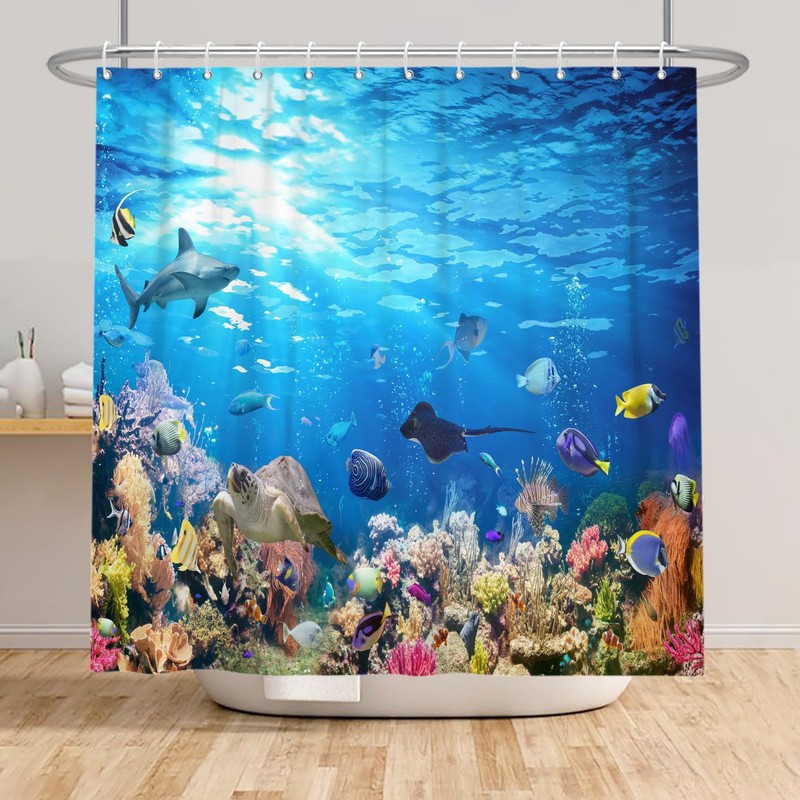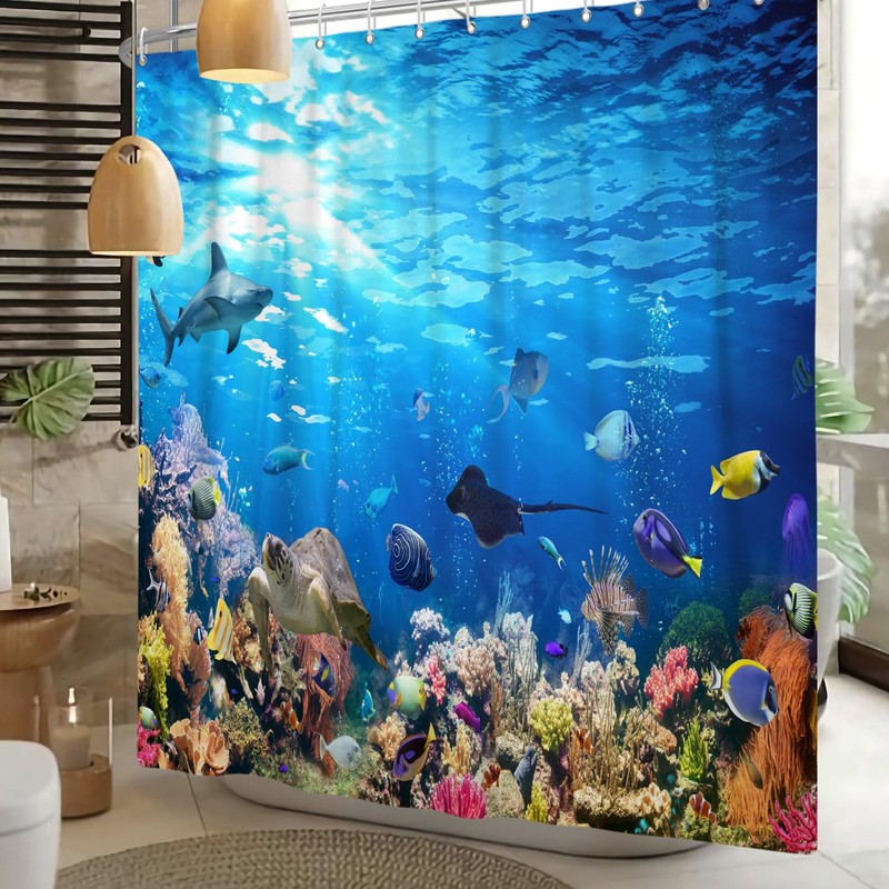 - High-quality materials: seabed bath shower curtains are made of 100% high-quality polyester fabric, soft and comfortable to the touch, no smell, no ventilation. High-quality materials ensure durability and comfort. Tips Vertical hanging for 2-3 days or ironing at low temperature with a steam iron can create a better visual experience when first use.