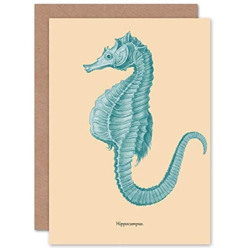 Sea Horse Hippocampus Blue Greeting Card With Envelope Inside Premium Quality