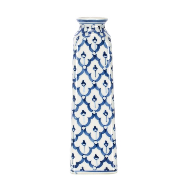 Sea Island Square Monument Glossy Blue and White 5 inch Porcelain Ceramic Vase