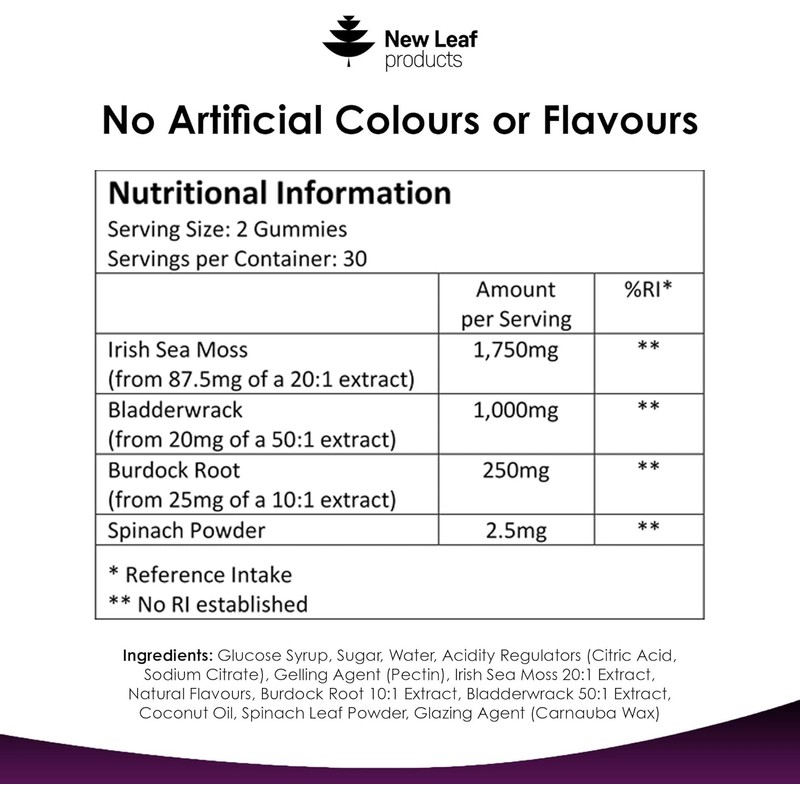 Sea Moss Gummies – 3000mg High Strength with Irish Sea Moss, Burdock Root & Bladderwrack – Vegan Vitamin Gummies – 60 Gummies – Made in the UK by New Leaf