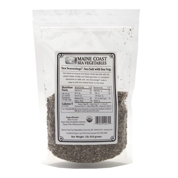 - CONTAINS: 1 pound (454 g) of Sea Salt with Sea Veg. Enjoy this gourmet sea salt blend with dulse and kelp in bulk for a wide variety of dishes. Made with Gulf of Maine evaporated sea salt, Organic Dulse (Palmaria palmata) and Organic Kelp (Ascophyllum nodosum). Perfect for Adding Flavor to Any Dish. Buy this to refill your shaker or to keep in your pantry for recipes.
