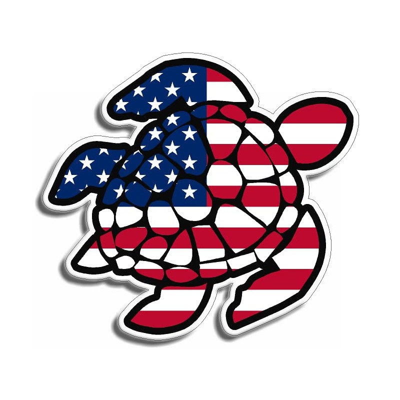 Sea Turtle American Flag USA Sticker Custom Vinyl Decal