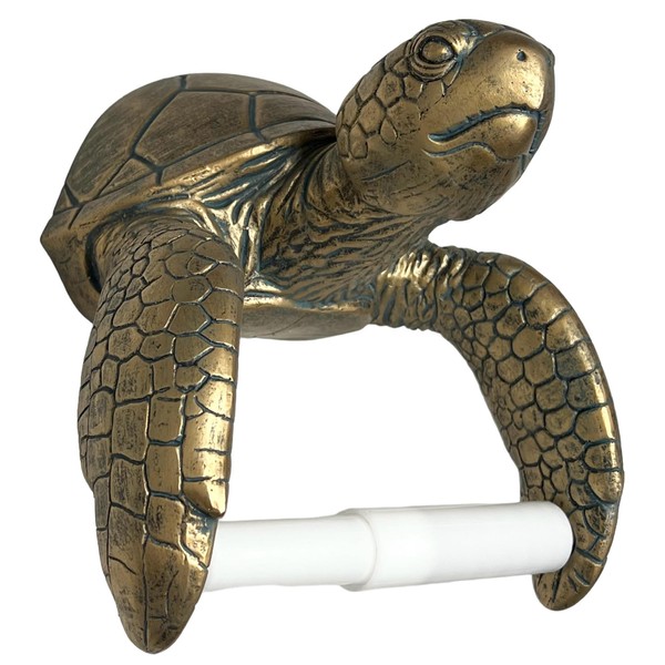 Sea Turtle Wall Mount Toilet Paper Roll Holder Rustic Nautical Beach Coastal Decor – Bronze Verdigris Finish