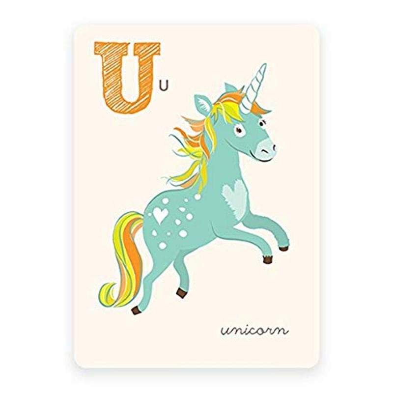Alphabet prints are a unique way to spell a child's name, or a favorite word. Framed individually, or hung on twine with mini clothespins, these are sure to make a very cute statement. 5" W x 7" H with rounded corners. Heavyweight paper. Printed in the US