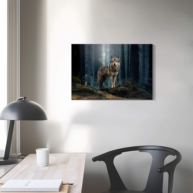 - Wild Animal Artwork Painting: The wolf canvas artwork arrives already ready to hang. Metal hook on the stretcher bars and hanging hardware are supplied for easy and quick mounting out of the box