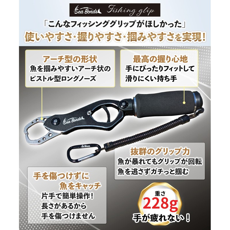• (Measurement Included) Equipped with a scale that can measure the moment you grab a fish. The body is straight when you grab a fish. The grip rotates horizontally even when fish ramps, making it easy to grab and keep it from escaping. Holds large fish at 44.1 lbs (20 kg) class