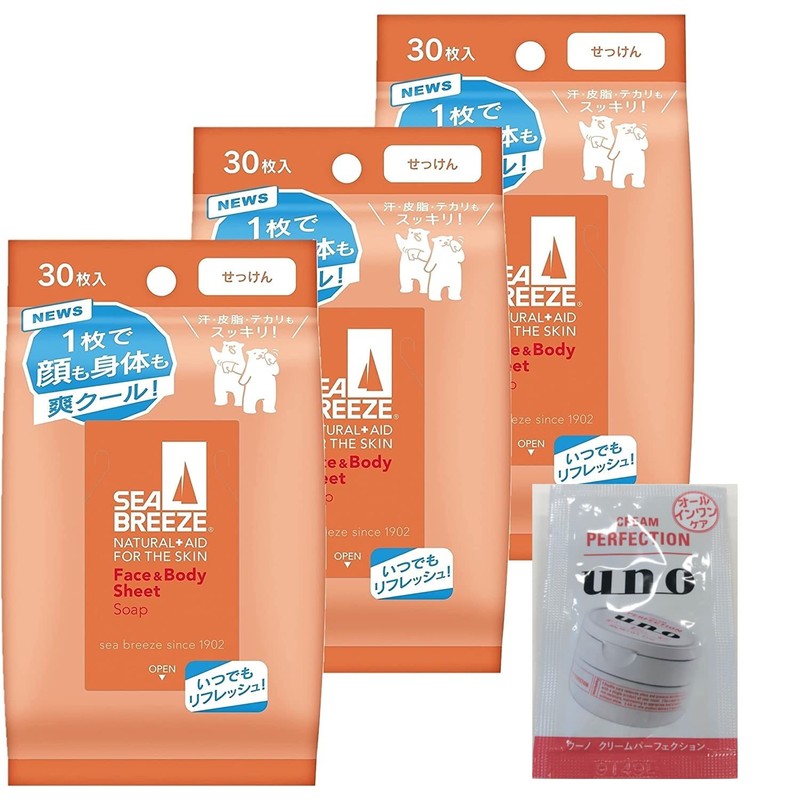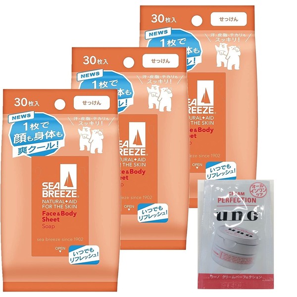 SEABREEZE Face & Body Sheet, Soap, 30 Sheets x 3 Packs + Bonus