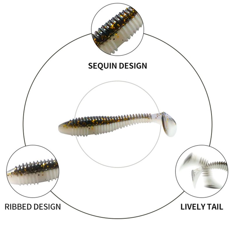 - Design – Made of high-quality materials, expert design and strict tests of the refractive fish pattern make SEABUZZ "Ringy Shad" more realistic and attractive. The soft silicone fishing lures with vivid design perfectly mimic irregular baitfish actions.