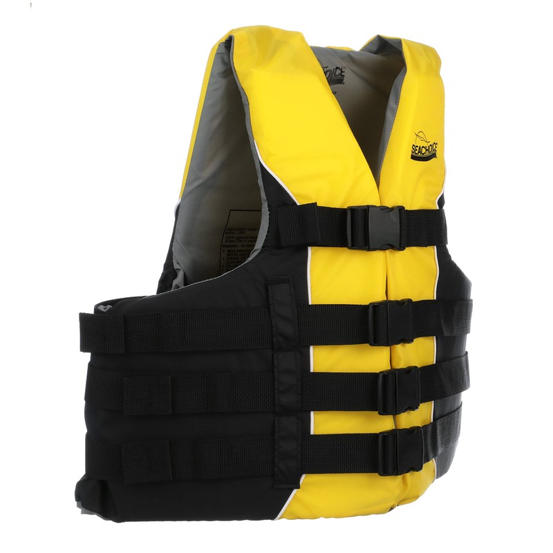 Seachoice Level 70 Life Jacket, Deluxe Adjustable 4-Belt Ski Vest, Yellow and Black, Size L/XL, 40-52 in. Chest