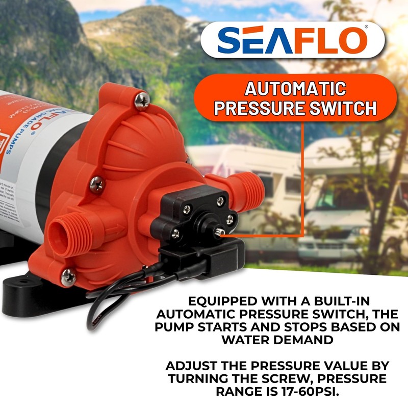 SEAFLO 33 Series Water 110V AC Pressure Pump - 115V AC, 3.3 GPM, 45 PSI, Self Priming, Smart Pressure Switch, for RV/Caravan/Marine/Industrial Use-NSF, CE & Rohs Certified, UL Listed, 4-Year Warranty