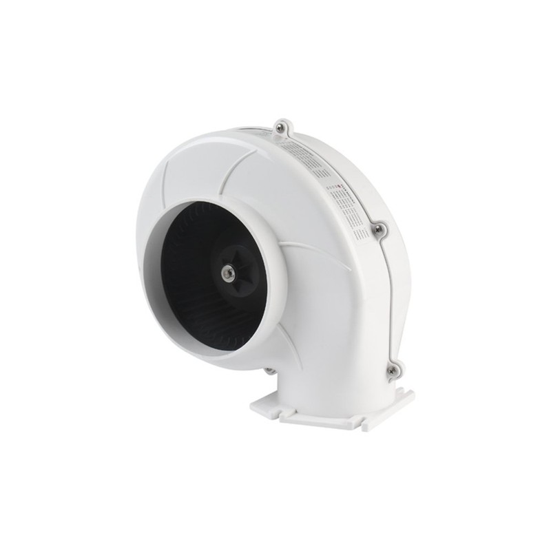 - 12 Volt, 320 cubic feet per minute flange mount blower fan