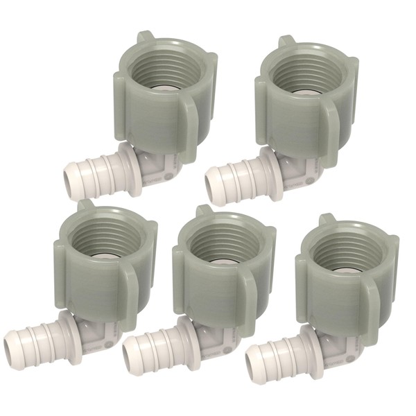 SEAFLO Plastic PEX Pipe Coupling 90 Degree Fitting Swivel Adapter 1/2"-14 FNPT x 1/2" Barb Elbow Fitting - Compatible with PEX or PE-RT Pipe, Corrosion Resistant (5-Pack)