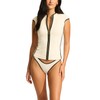 Seafolly Women's Standard Short Cap Sleeve Zip Front Rashguard with Removable Cups, Beach Bound Ecru