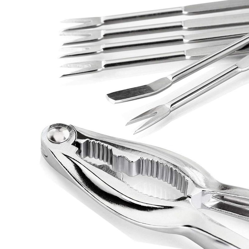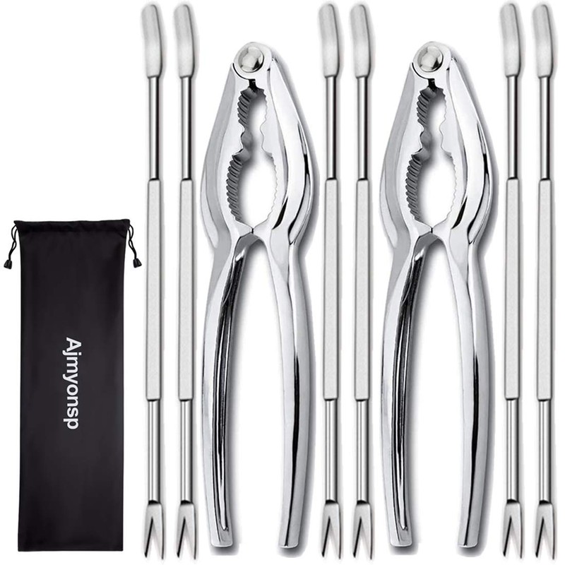 - Upgraded version seafood crackers are constructed of die-cast zinc alloy, heavy duty and durable more strong. Lobster picks are made from stainless steel, provides the reach needed for probing deep into seafood shells.