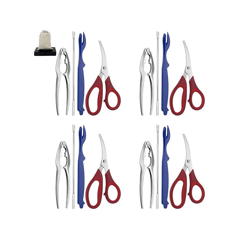 Seafood Tools Set includes 4 Crab Crackers 4 Seafood Fork 4 Lobster Crackers 4 Seafood Scissors -Nut Cracker and Storage Bag(17 Piece )