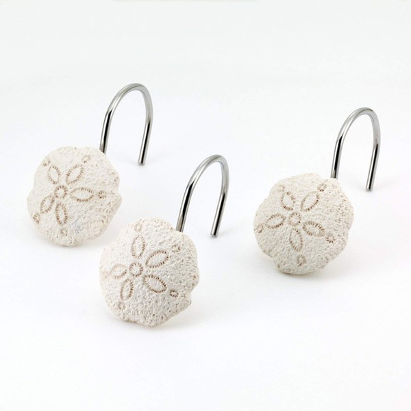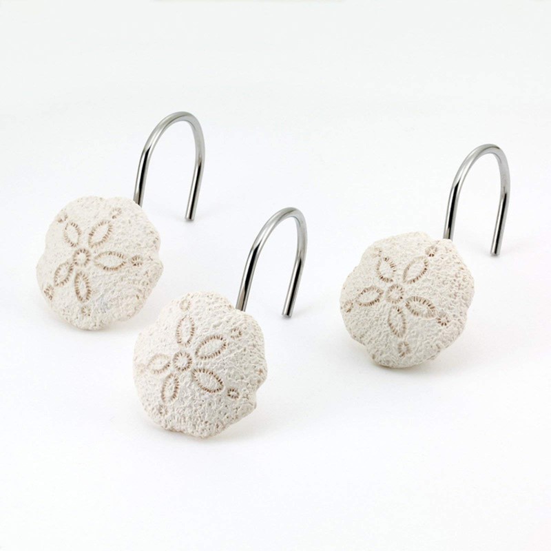 - This 12 pc shower hook set features realistic sand dollars made from molded and hand-painted resin. They look freshly picked from the sea to add some authenticity to your beach bathroom decor. Presented in a natural off-white.