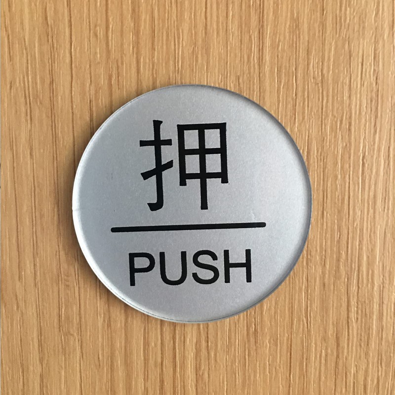 Seagron Push Pull PULL PUSH Door Plate with Double Sided Tape, Silver Color, 0.1 inch (2 mm), Acrylic, Stylish (Round, Push/Pull)