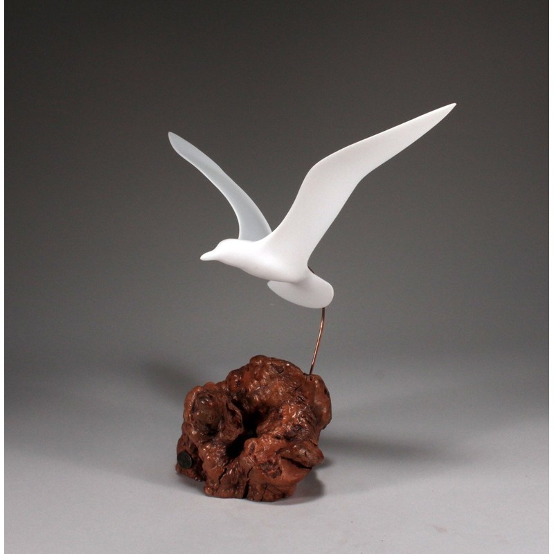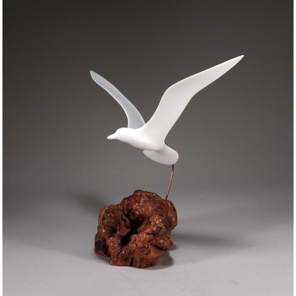 Seagull Sculpture by John Perry "Wings up" Style on Burl 14 in wingspan Pellucida Statue