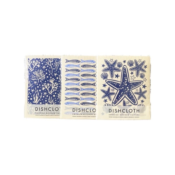 SeaKisses - Pack of 3 Swedish Dishcloths - Starfish, Coral, Little Fish