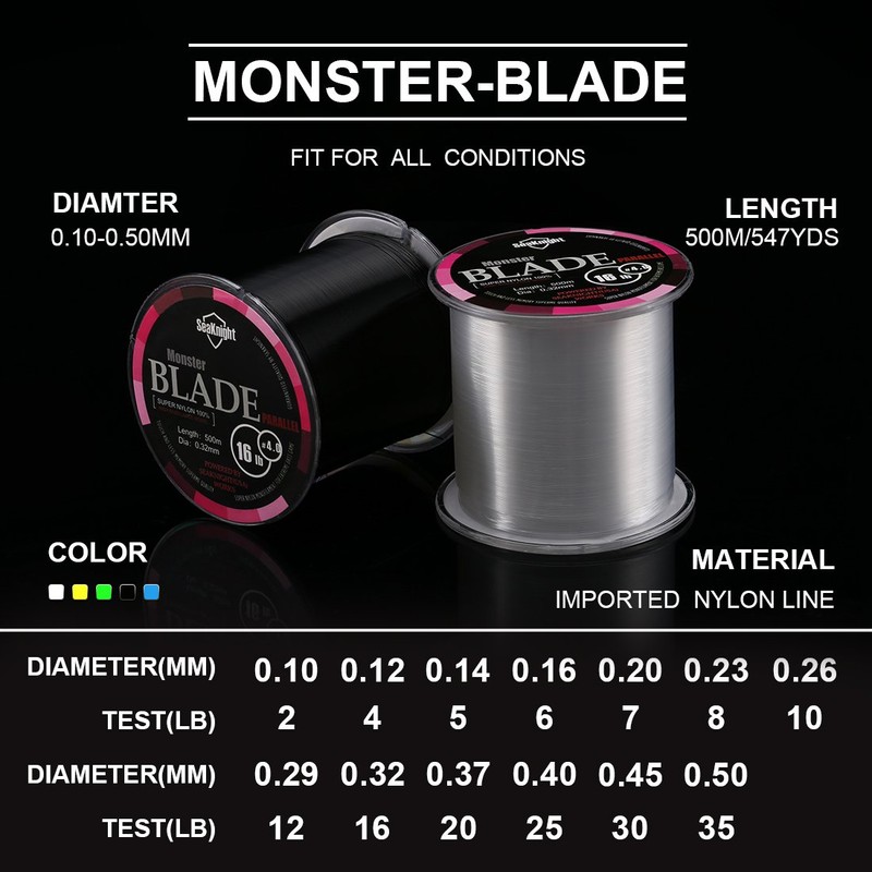 SeaKnight Blade Monofilament Fishing Line, 547Yds/ 1094Yds Japanese Material, High-Abrasion Resistance, Low-Ductility and Memory, Nylon Monofilament Line, for Fresh and Salt Water 2-35LB