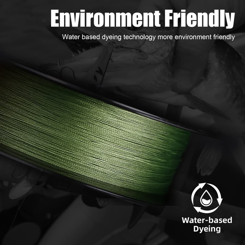 - WATER-BASED DYE COATING TECHNOLOGY - The self-developed water-based dye coating process has excellent UV resistance, can effectively reduce the fading of fishing lines caused by ultraviolet radiation. The use of water-based dyes brings more uniform colors and higher color fastness. It has also passed the EU ROHS test and has no carcinogen residues, everyone can enjoy fishing safely.