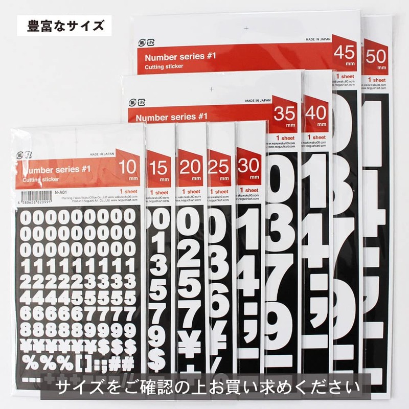 Available in a variety of sizes Waterproof cutting seal of numbers The numbers are cut out so you can easily attach them side by side to make your original stickers. It is waterproof, so it can be used to decorate posts, doors, bicycles, suitcases, and personal items, or for displaying shops. You can use it in a variety of ways depending on your This is not a decal. The material is a thick seal. Please check the size before making your purchase. *Letter size: 0.4 inches (10 mm), 0.6 inches (15 mm), 0.8 inches (20 mm), 1.0 inches (25 mm), 1.2 inches (30 mm) (2 pieces of the same one).