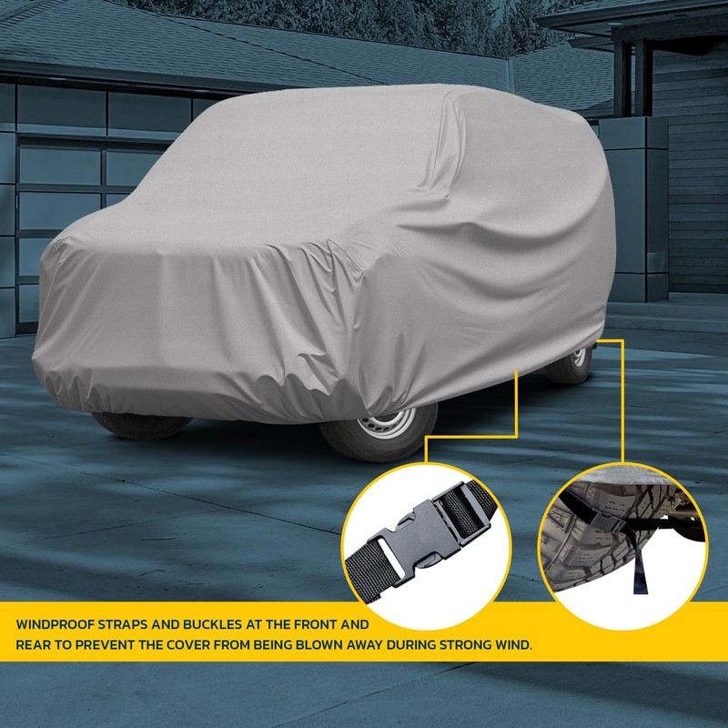 - ALL WEATHER PROTECTION : Protecting your vehicle against UV rays, sand, dust, leaves, snow, rain, frost, and bird droppings. Its robust material guarantees effective resistance to rain and snow, ensuring your car remains secure and pristine in any weather