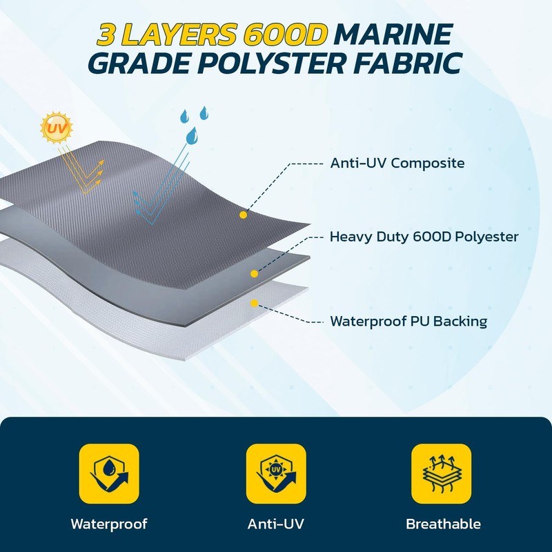 - 𝗛𝗘𝗔𝗩𝗬 𝗗𝗨𝗧𝗬: Superior 600 denier polyester fabric. Won't shrink or stretch, and provides strong UV protection when stored outside.