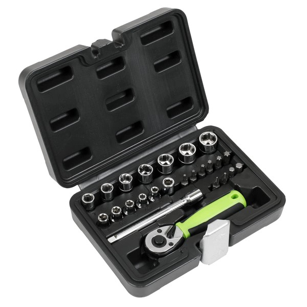 - Contents: 1/4"Sq Drive Standard Sockets; 4, 4.5, 5, 5.5, 6, 7, 8, 9, 10, 11, 12, 13mm, 1/4"Sq Drive Bits; TRX-Star* - T10, T15, T20, T25, T30, T40, Phillips - #1, #2, Hex - 5, 6mm, 1/4"Sq Drive Extension Bar; 100mm, 1/4"Sq Drive Adaptor, 1/4"Sq Drive Ratchet Wrench.
