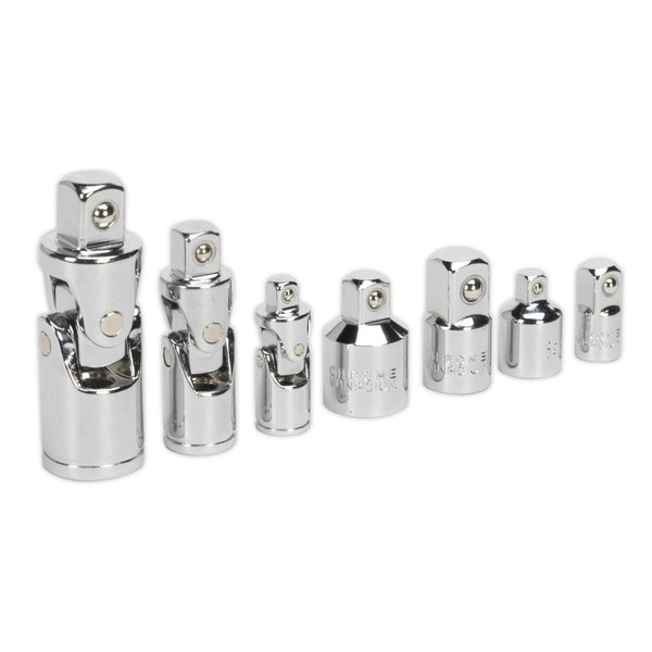 Sealey Ak2737 Universal Joint and Socket Adaptor Set 7Pc 1/4 3/8 and 1/2Sq Drive