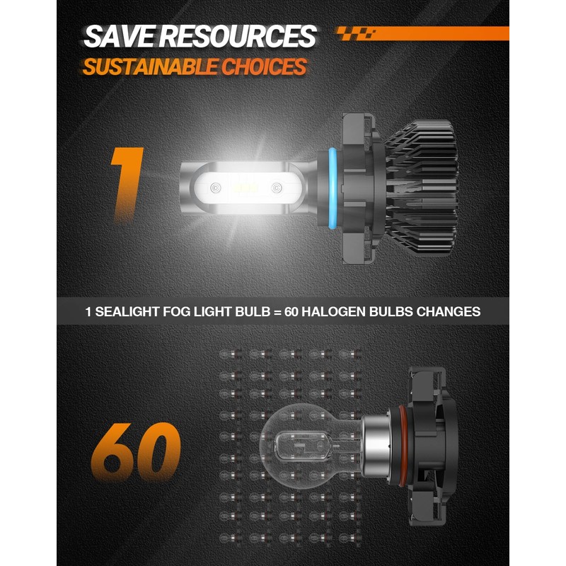 SEALIGHT 5202 LED Fog Lights Bulbs or DRL, 400% Much Brighter 5202 5201 PS19W PS24W Fog Light, 6000 Lumens 6000K Xenon White Light, 12 CSP LED Chips, Plug-and-Play, IP67 Design