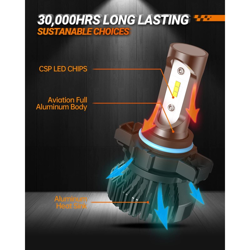 - High Brightness and Low Attenuation: Compared to factory original bulbs, 5202 fog light LED can protect the original lampshade, will not yellowing and aging, and the light decay is lower. 6000K Daylight White, softer than 6500K Cool White, which can better penetrate fog, rain, snow and other weather