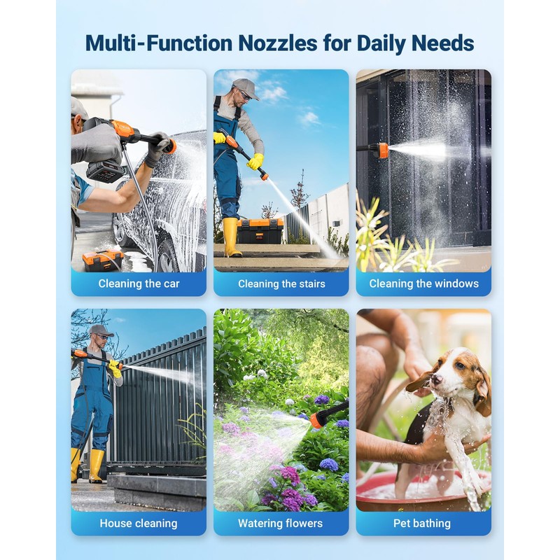 - 【EASY ASSEMBLY AND PERFECT GIFT】The installation of this cordless pressure washer kit is simple and fast, everyone can use it easily. It is also a unique gift, whether it's Mother's Day, Father's Day, birthdays, graduation ceremonies, or other special occasions, our car wash machine can bring unique and thoughtful surprises to your family, friends, and loved ones.