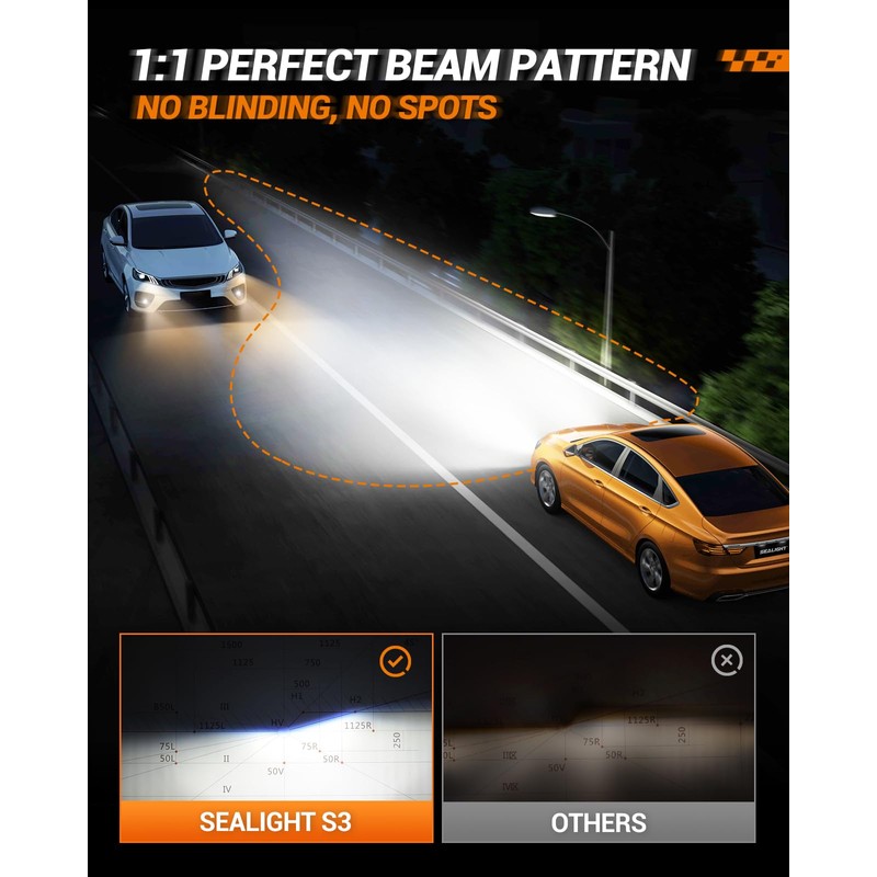 - 1:1 Perfect Beam Pattern: SEALIGHT H1 light bulbs adapt 0.04 inch ultra-thin chip copper plate, designed to provide a wider and more focused light beam for night driving