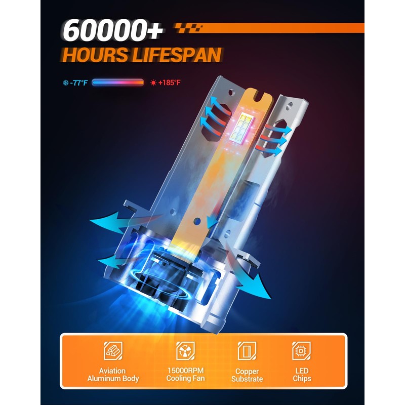 - 60,000+ HOURS LIFESPAN: Say goodbye to frequent bulb, SEALIGHT H1 fog lights equipped with 15000PRM silent cooling fan, thermostatic copper plate and single copper tube for great heat dissipation, providing a longer lifespan up to 60000+ hours