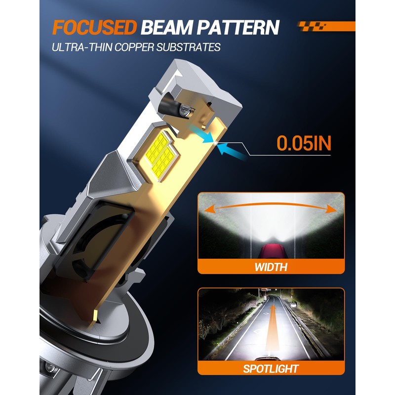 - Optimized Light Pattern: The ultra-thin copper substrate, measuring a mere 0.05 inches, addresses common issues of flickering and dimming. The focused light pattern is designed to minimize glare for oncoming traffic, enhancing safety for all road users.