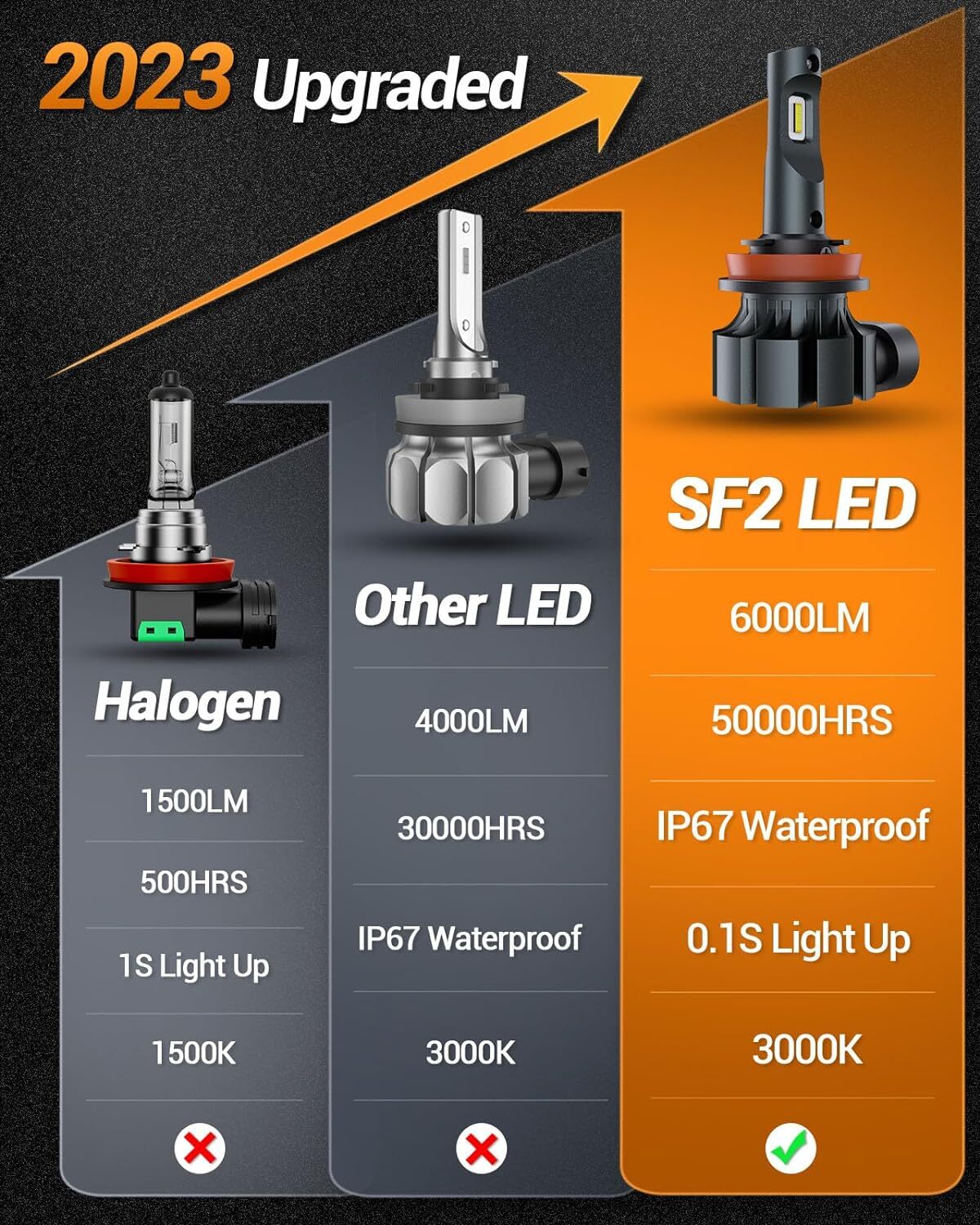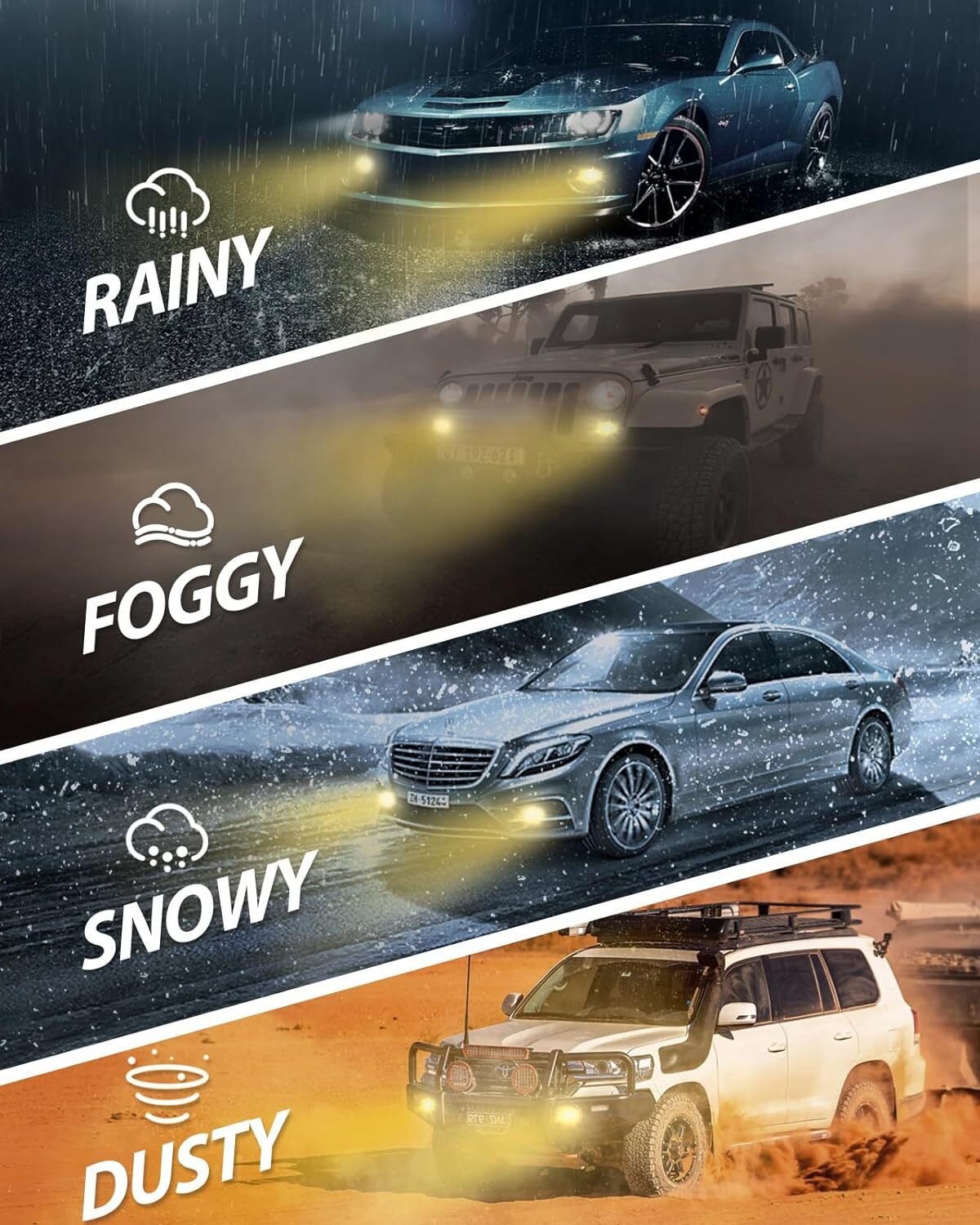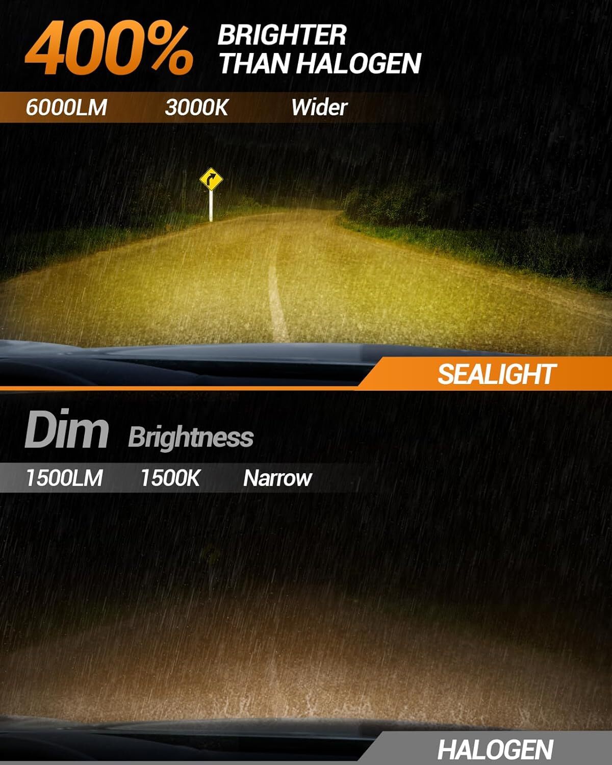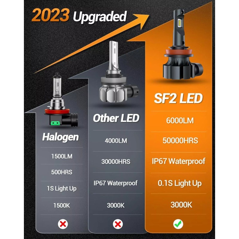 SEALIGHT H8 H16 H11 LED Fog Light Bulbs DRL 3000K Yellow Fog Lights 2pcs