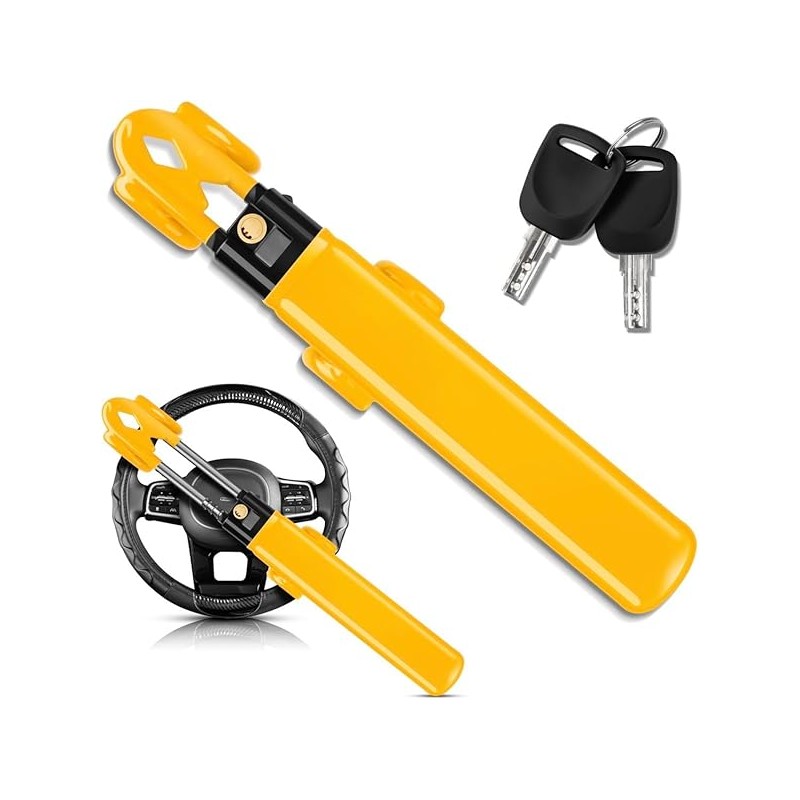 SEALIGHT Steering Wheel Lock Anti-Theft Car Device, Adjustable Steering Wheel Lock for Cars, Double Hooks & Heavy Duty Car Security Lock for Cars Trucks Vans SUV(with 2 Keys)
