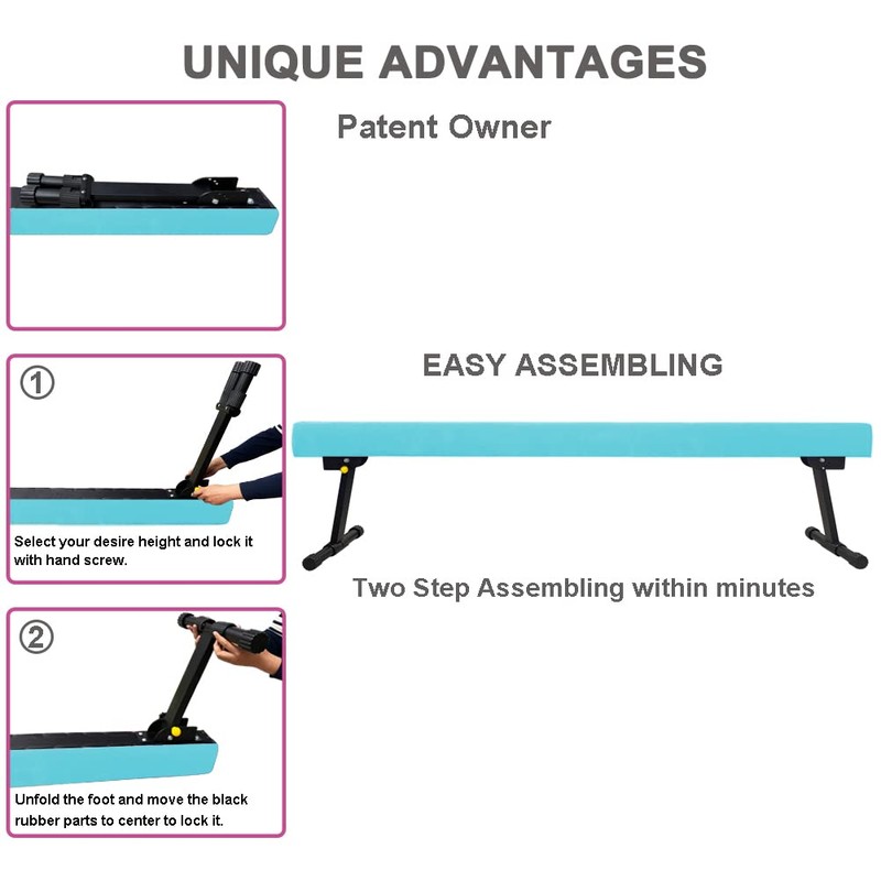 - 【SUPER EASY!! ASSEMBLING&STRONG】We have patents in our hands!! After 1 year of modification and experiment. We have successfully studied this Adjustable&Foldable balance beam. No tools required. It can be quickly folded and adjusted to the height you want. It is strong enough. Up to 300 pounds. And we will give it more beautiful patterns. Coming soon!